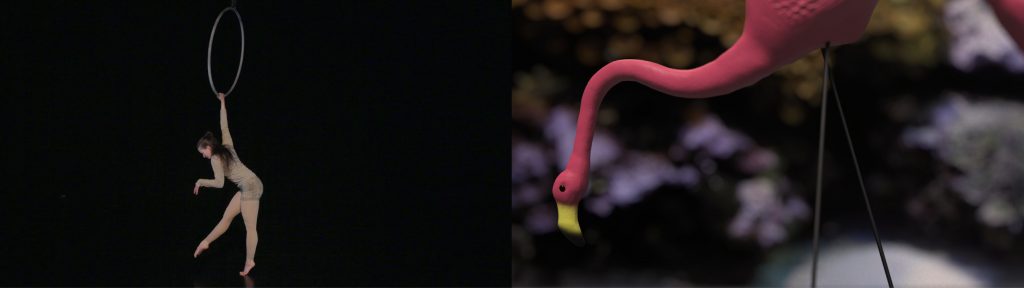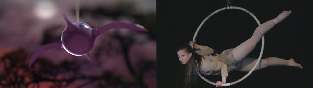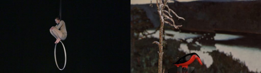 Teoskokonaisuuden toinen osa on kaksikanavainen videoteos, jonka toisessa kuvassa on animoituja, vinksahtaneita muovilintuja – soittorasioita, leluja ja kitsch-henkisiä koriste-esineitä – toisessa painovoimaa vastaan taistelee ilma-akrobaatti muovilintukuoron ja H. C. Andersenin satua lukevan kertojaäänen säestämänä. Sirkustaiteeseen kuuluva ruumiillinen läsnäolo ja taiteenlajiin sisäänrakennettu onnistumisen ja epäonnistumisen tematiikka tuo autenttisuutta ja vahvan kyvyn välittää tunteita ja merkityksiä. Sen lisäksi sirkukseen niin ikään kuuluva kuva yli-ihmisestä sitoo ilma-akrobatian Satakieli-teoksen aiheeseen, samoin kuin akrobaatin liikekieli ja estetiikka. Teoksen äänimaailman ovat toteuttaneet Antonio Alemanno, Tapani Rinne ja Viktor Toikkanen. Salla Santanen on tehnyt koreografian sekä esiintyy ilma-akrobaattina.